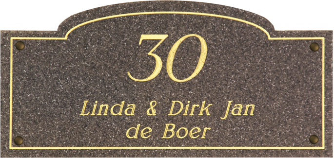 Gravoglas is een luxe en tegelijk stevige kunststofsoort (3 mm dikte), met de uitstraling van gekleurd glas, welke uitstekend geschikt is voor gebruik in en rondom uw woning. De tekst wordt in alle gravoglas-naamborden gegraveerd, waardoor uw naam niet weg kan slijten of vervagen. Het bijzondere aan gravoglas is dat het aan de achterzijde ingegraveerd wordt, dit in tegenstelling tot andere kunststofsoorten. Hierdoor blijft het materiaal aan de voorzijde glad en krijgt het een hele luxe uitstraling. Tot slot: de gravoglas-naamborden zijn standaard voorzien van schroefgaten (tenzij anders vermeld) en worden geleverd met afstandbusjes en afdekdopjes waardoor u het naambord eenvoudig op een korte afstand van de muur kunt monteren. Gravoglas een zeer luxe kunststofsoort dat tegen een stootje kan!