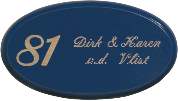 Het hout dat voor de meeste modellen gebruikt wordt is een zachte houtsoort (1-2 cm dikte) welke uitstekend geschikt is om goed in te graveren. Uw naam zal door de graveerwijze niet weg slijten of vervagen. De tekst wordt niet ingekleurd. Deze is bij alle houten naamborden een naturel houtkleur. U kunt uw houten naambord heel eenvoudig met een klein beetje montagekit op vrijwel elke achtergrond monteren. Hout is een bijzonder natuurproduct en daardoor gevoeliger voor de weersomstandigheden dan harde materialen als de kunststof- en metaalsoorten. Achterin de catalogus treft u ook teakhouten naamborden aan die veel sterker en beter geschikt voor de weersomstandigheden zijn. Tot slot: alle houten naamborden worden zonder bevestigingsmateriaal geleverd. Hout: puur natuur!