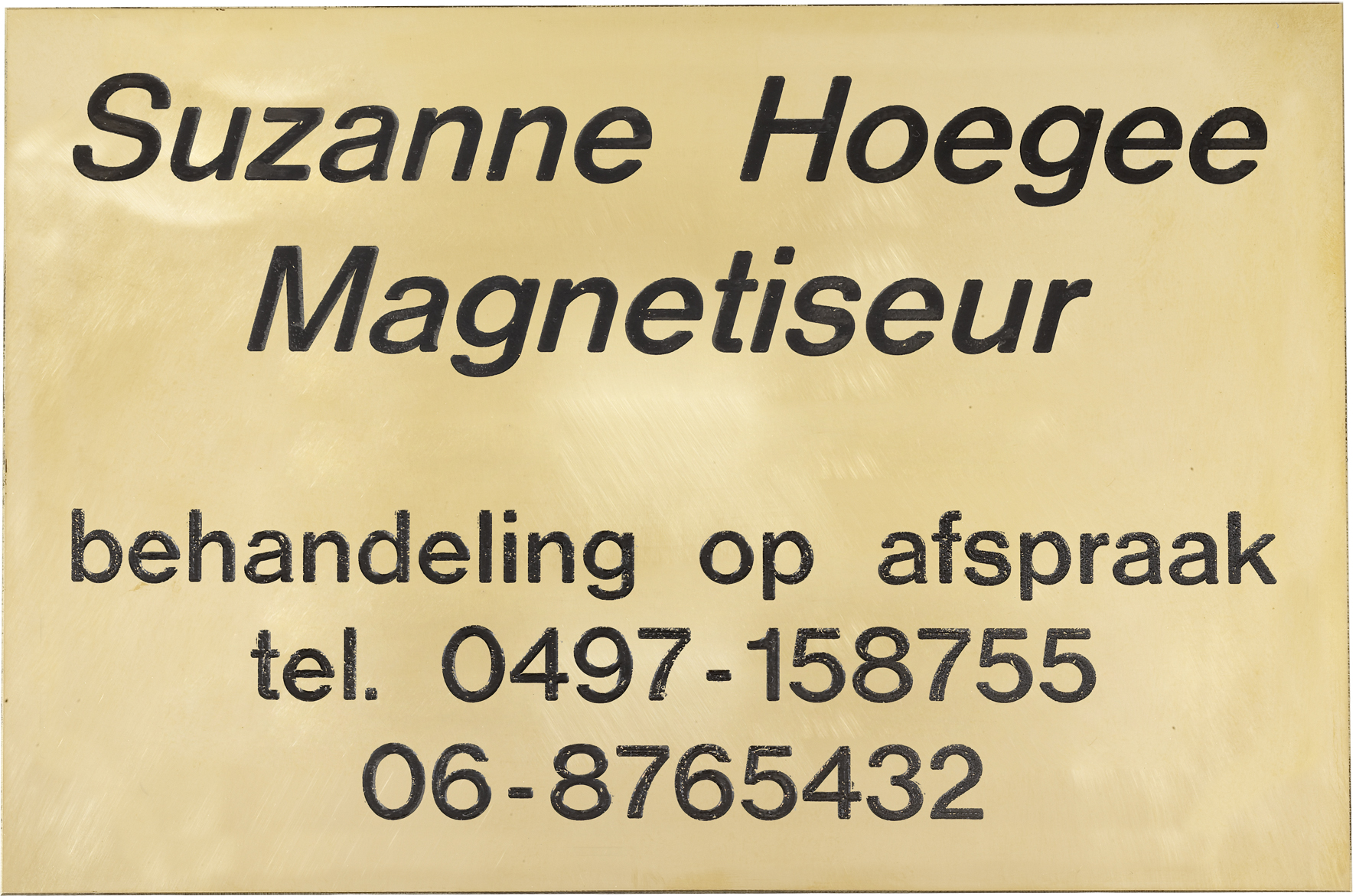 Messing is een koperlegering, zogenaamde geel koper, welke uitstekend geschikt is voor gebruik in en rondom uw woning. Onze messing naamborden worden nog echt ambachtelijk gegoten, zijn door ons zelf ontworpen en zo een zeer exclusief stuk ambachtelijk vakwerk waar wij erg trots op zijn! Wij behandelen onze messing naamborden met de grootst mogelijke zorg en voorzien de messing naamborden, na het graveren, van een laklaag. Ondanks deze laklaag zijn onze messing naamborden niet vrij van onderhoud. Na verloop van tijd zal de laklaag namelijk zijn kracht verliezen. Met thinner verwijdert u dan de resten van de oude laklaag en met koperpoets doet u uw messing naambord weer glimmen. Vervolgens is het opspuiten van een nieuwe laklaag (te verkrijgen bij de doe-het-zelf vakman en/of bouwmarkt) voldoende om uw naambord voorlopig onderhoudsvrij te maken. De gezaagde messing naamborden en ornamentplaatjes (9401 t/m 9602) zijn niet gelakt en dient u te onderhouden door middel van koperpoets.