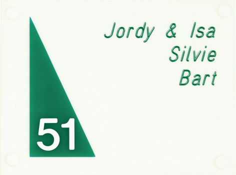 Perspex is een stevige kunststofsoort (3 mm dikte), welke uitstekend geschikt is voor gebruik in en rondom uw woning. De tekst wordt in alle perspex-naamborden gegraveerd, waardoor uw naam niet weg kan slijten of vervagen. De transparante perspex naamborden worden aan de achterzijde ingegraveerd (waardoor de voorkant glad blijft) en de gekleurde perspex naamborden worden aan de voorzijde ingegraveerd. Tot slot: de perspex-naamborden zijn standaard voorzien van schroefgaten (tenzij anders vermeld) en worden geleverd met afstandbusjes en afdekdopjes waardoor u het naambord eenvoudig op een korte afstand van de muur kunt monteren. Perspex een luxe kunststofsoort dat tegen een stootje kan!
