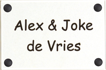 Perspex is een stevige kunststofsoort (3 mm dikte), welke uitstekend geschikt is voor gebruik in en rondom uw woning. De tekst wordt in alle perspex-naamborden gegraveerd, waardoor uw naam niet weg kan slijten of vervagen. De transparante perspex naamborden worden aan de achterzijde ingegraveerd (waardoor de voorkant glad blijft) en de gekleurde perspex naamborden worden aan de voorzijde ingegraveerd. Tot slot: de perspex-naamborden zijn standaard voorzien van schroefgaten (tenzij anders vermeld) en worden geleverd met afstandbusjes en afdekdopjes waardoor u het naambord eenvoudig op een korte afstand van de muur kunt monteren.