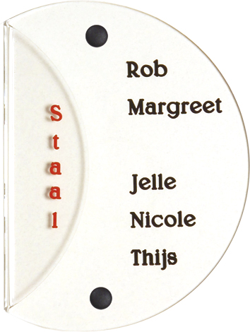 Perspex is een stevige kunststofsoort (3 mm dikte), welke uitstekend geschikt is voor gebruik in en rondom uw woning. De tekst wordt in alle perspex-naamborden gegraveerd, waardoor uw naam niet weg kan slijten of vervagen. De transparante perspex naamborden worden aan de achterzijde ingegraveerd (waardoor de voorkant glad blijft) en de gekleurde perspex naamborden worden aan de voorzijde ingegraveerd. Tot slot: de perspex-naamborden zijn standaard voorzien van schroefgaten (tenzij anders vermeld) en worden geleverd met afstandbusjes en afdekdopjes waardoor u het naambord eenvoudig op een korte afstand van de muur kunt monteren.