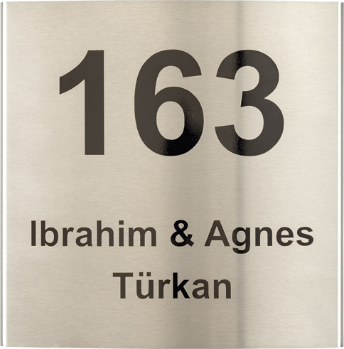 RVS is een zeer sterke staalsoort, welke uitstekend geschikt is voor gebruik in en rondom uw woning. RVS staat voor roest-vast-staal en is daardoor bijzonder weersbestendig, maar niet geheel vrij van onderhoud. Daarom dient uw RVS-naambord af en toe met HG snelglans (te verkrijgen bij de doe-het-zelf vakman en/of bouwmarkt) behandeld te worden. Het is niet verstandig de RVS-naamborden te poetsen, doordat de tekst op alle RVS-naamborden beletterd wordt; zo kan de tekstlaag niet beschadigen of vervagen, indien u geen belettering wenst, dient dit aan te geven in de opmerkingen, wij voorzien dan het naambord van een lasergravure, deze is altijd antraciet/zwart. Tot slot: alle RVS-naamborden worden standaard geleverd met RVS-bevestigingsmateriaal om zo oxidatie bij de schroefgaten tegen te gaan. (N.B. Bovenstaande geldt ook voor alle aluminium en RVS-look naamborden 1400/1500 serie met de uitzondering dat deze naamborden standaard zonder schroefgaten, maar zelfklevend geleverd worden). RVS uniek materiaal, geschikt voor allerlei stijlen, dat tegen een stootje kan!